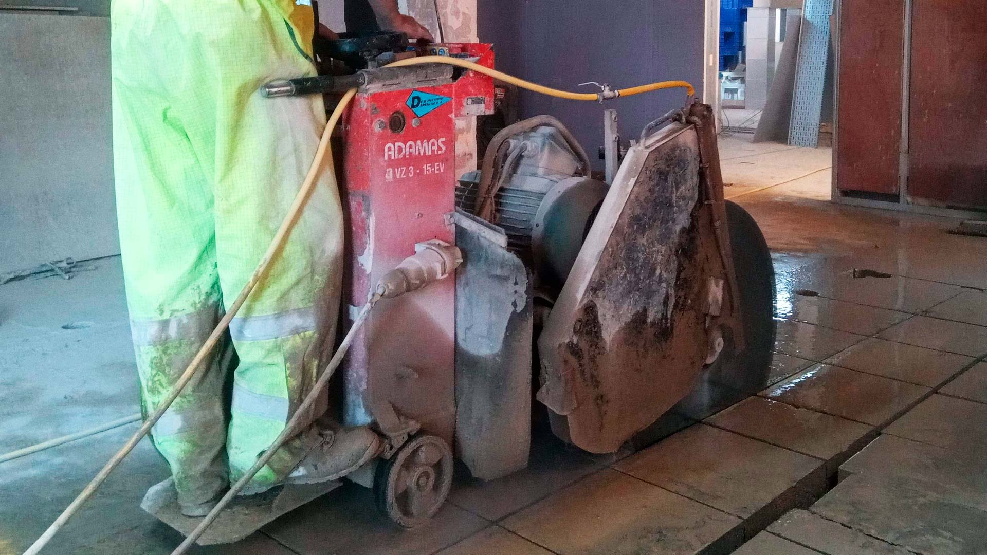 The perimeter of the opening was Diamond Sawn using a 3 phase electric saw to define the edge of the opening and leave a clean cut to full depth.